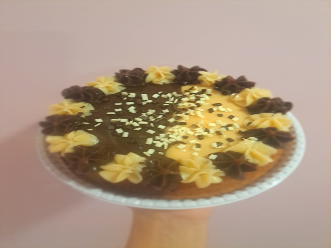 Massa mesclada chocolate e ninho.